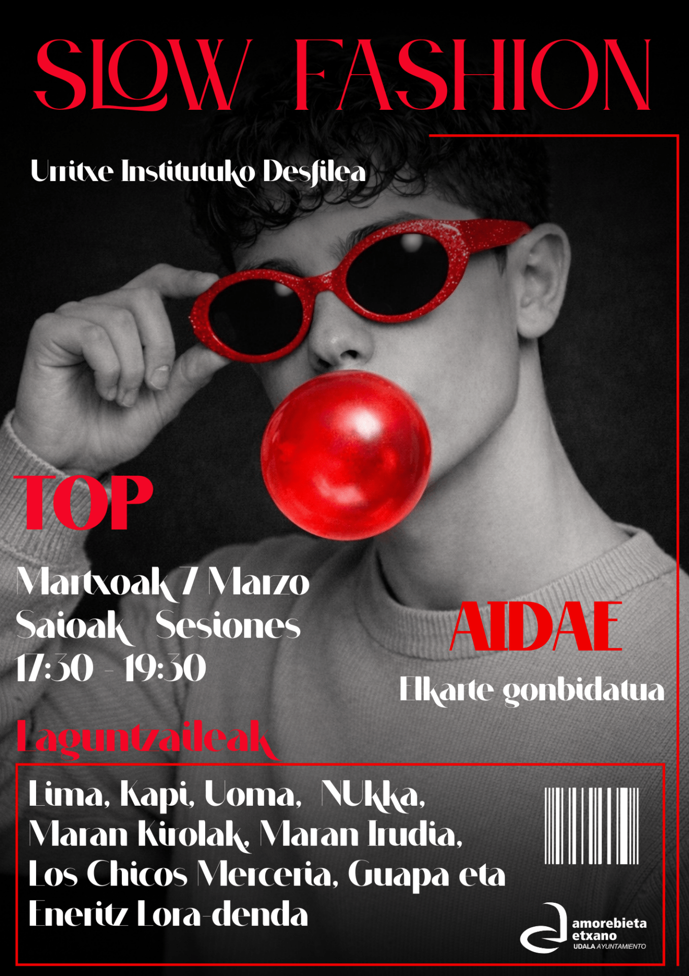 Herriko dendetako moda proposamenak ezagutzera ematen dituzte Urritxe Instituko gazteek desfile honetan. Gai nagusia “Slow fashion” izango da eta desfilatzeaz gain, zuzeneko musika entzun eta gazteek sorturiko koreografiak ikusteko aukera izango du ikusleak.